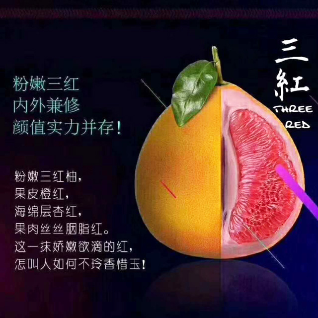 三红蜜柚果肉色泽鲜艳、汁多柔软,清甜微酸,清香爽口。