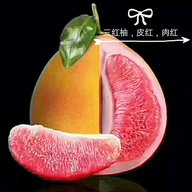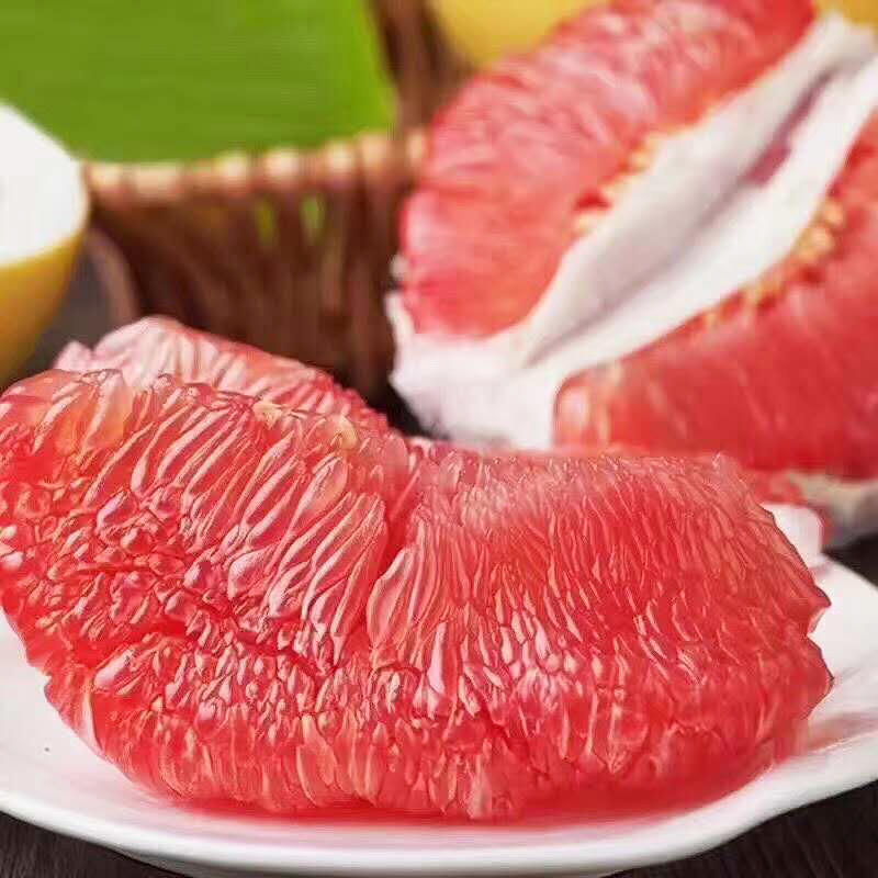 三红蜜柚:皮色淡红,瓤红肉红,纤维口感像红心柚,肉质细嫩清甜。降血脂效果比白柚更强。