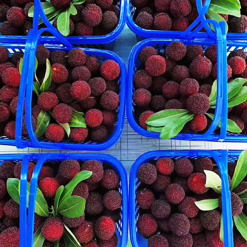包装:一箱内两篮杨梅共重6斤(连篮重),抽真空塑料袋,装保温泡沫箱,加冰袋,外套纸箱,毛重10斤左右。(下图中的杨梅是黑炭梅)