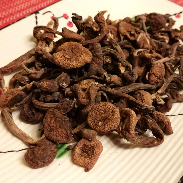 榛蘑被誉为“东北第四宝“,是极少数不能人工培育的食用菌之一。小鸡炖蘑菇是东北人招待贵客不可缺少的传统佳肴,其中的蘑菇就是用榛蘑。榛蘑滑嫩爽口、味道鲜美、营养丰富。却因为新鲜的榛蘑保鲜期很短,干品的卖相不好看而未能打开中国市场,多半出口日本、韩国等。