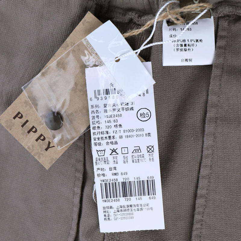 Pippy原单正品女童咖啡色灯芯绒中裤