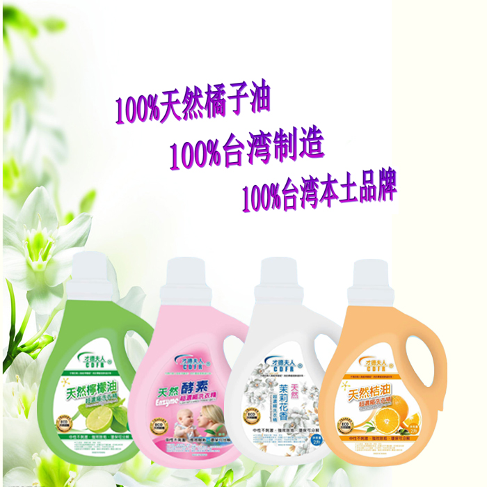 100%天然橘子油,100%台湾制造,100%台湾本土品牌。天然,不刺激,满满果香的才德夫人天然生态浓缩洗衣精,让你远离过敏原,给您全方位的清洁防护。