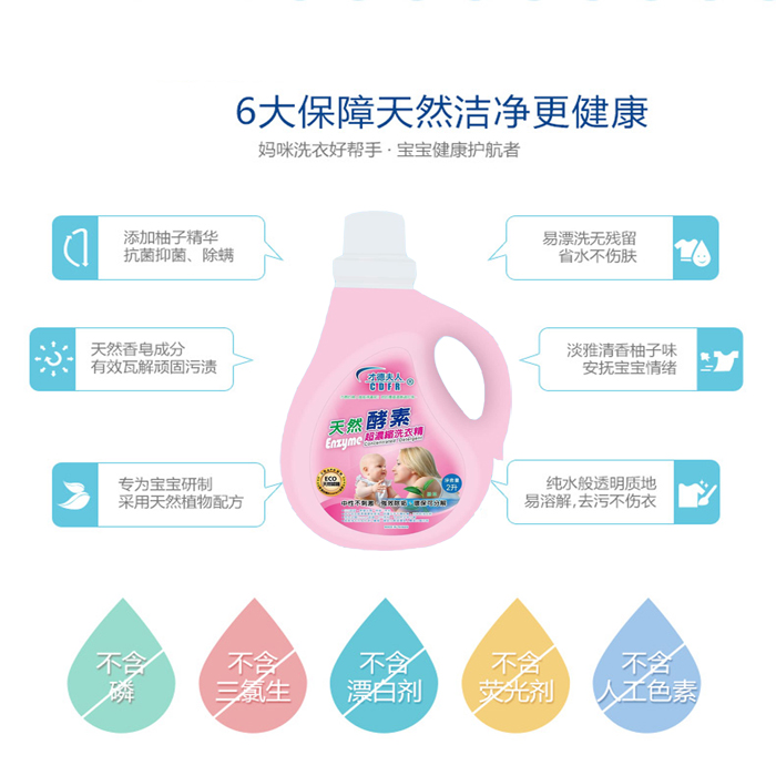 5. 不添加荧光剂、增白剂与增艳剂,无刺激性残留,婴幼儿与贴身衣物的最佳选择
