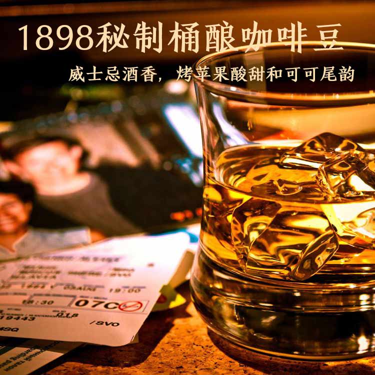 美酒和咖啡一直是个迷死人的组合,从邓丽君的《美酒加咖啡》到痞子蔡的《爱尔兰咖啡》,都赋予感官了无尽的想象。感谢美国桶酿咖啡先驱提供的经验,1898的烘焙师经过不懈努力,终于用水洗法的哥伦比亚咖啡豆和陈年西班牙雪莉桶构建出了甜美酒香,成熟水果和咖啡组合在一起的醉人味道。