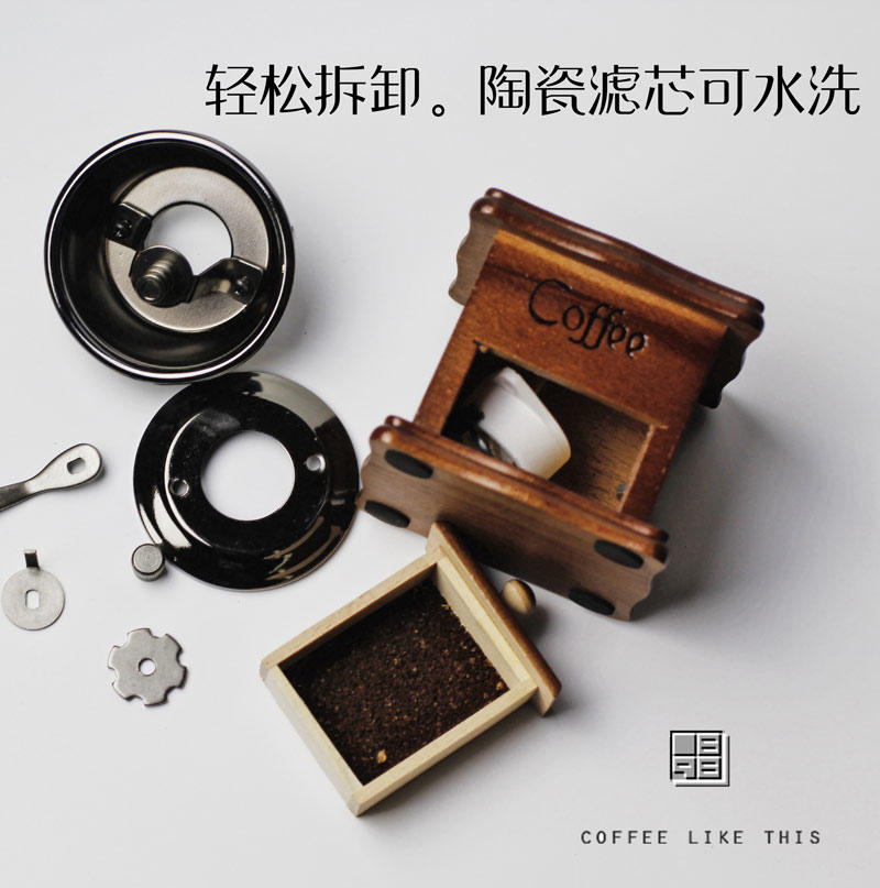 1898古典原木陶瓷芯手摇咖啡豆研磨机