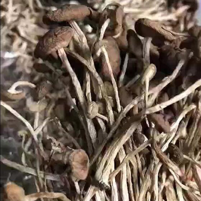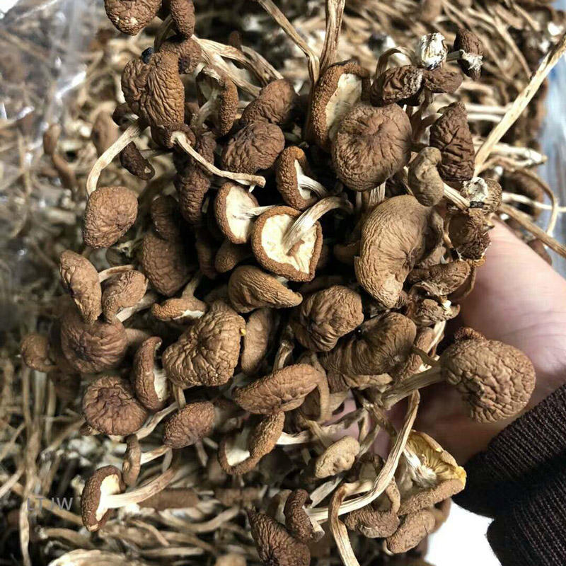 这是不开伞茶树菇,需要每四个小时就采摘一次,比开伞的口感更嫩,价格也比开伞的要高。五斤左右鲜菇才能烘干成一斤干菇。