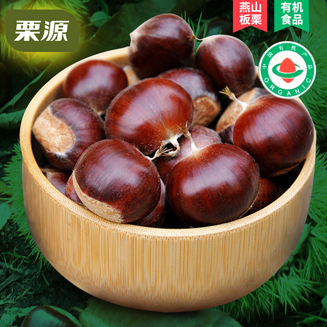 新鲜上市的有机鲜板栗产自河北北部北京以东的燕山山区又称为燕山板栗:这里生长出来的板栗,无任何添加剂,在山区里自然成熟掉落,人工精挑细选,剥开会有股浓郁的板栗香甜的味道,颗粒非常饱满,而且香甜软糯,皮也很薄,表皮紫红光亮,果肉金黄,品种质量非常的好。