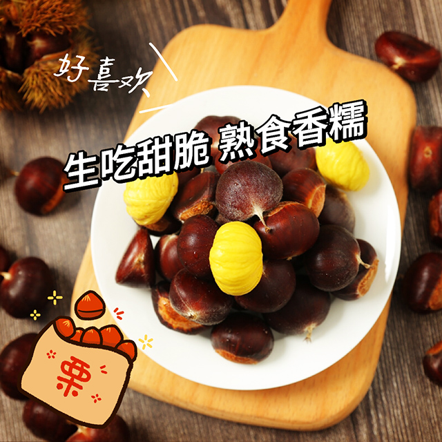 板栗营养丰富,不仅生吃脆甜,还特别适合糖炒、烘培、还可调羹烹菜……,生吃脆甜可口,蒸煮软糯香甜,炖肉炖汤样样营养百搭。